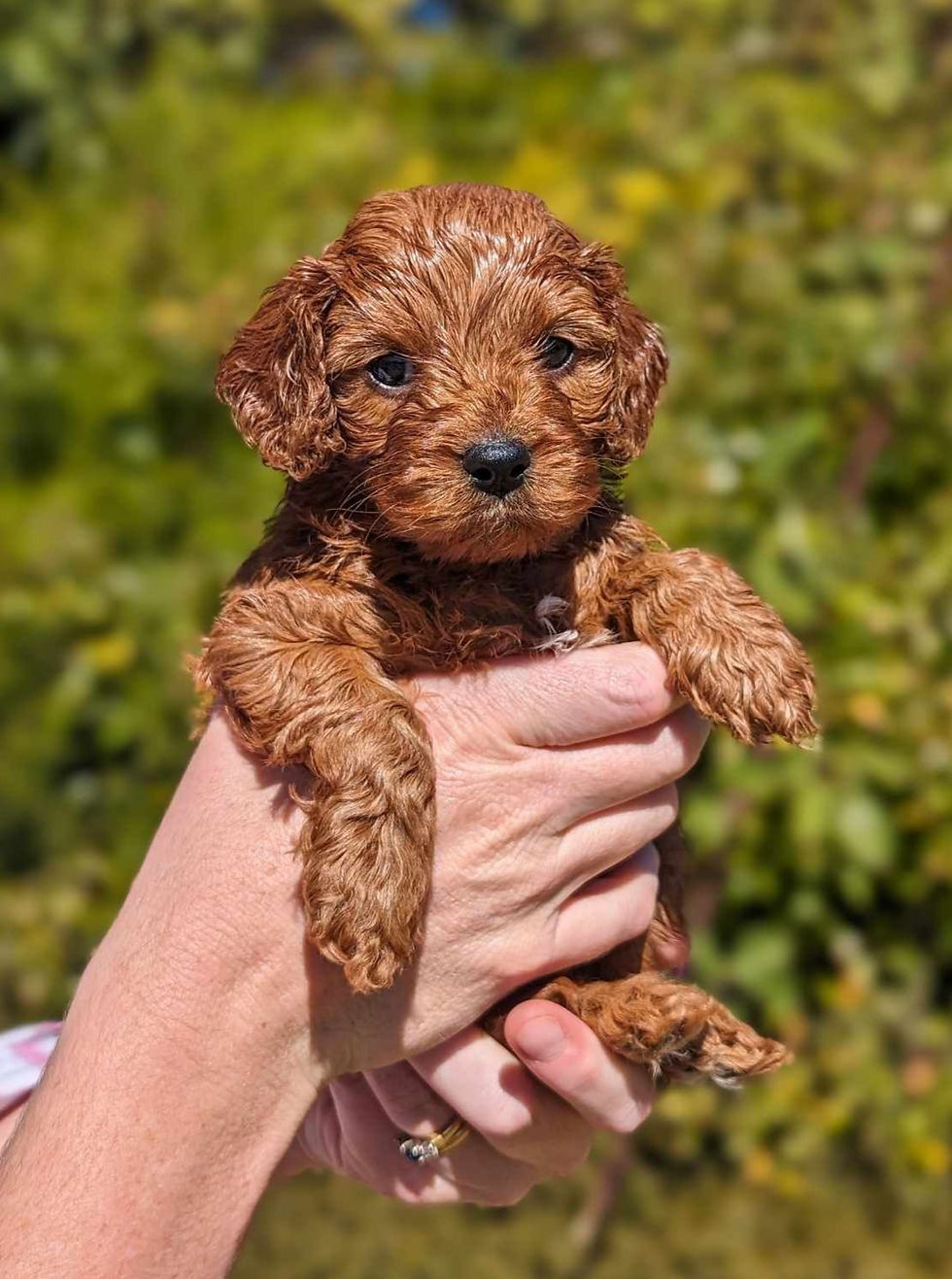 Trifle is the cutest little pup who is the first out of the bed wanting to play with her friends and explore. She loves a cuddle.